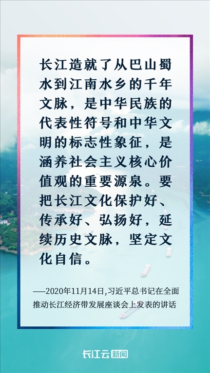 長(zhǎng)江之水萬(wàn)古奔流,千年文脈生生不息。黨的十八大以來(lái),習(xí)近平總書(shū)記高度重視長(zhǎng)江文化保護(hù)傳承弘揚(yáng),先后發(fā)表一系列重要講話,作出一系列重要指示批示,強(qiáng)調(diào)“要把長(zhǎng)江文化保護(hù)好、傳承好、弘揚(yáng)好,延續(xù)歷史文脈,堅(jiān)定文化自信”。