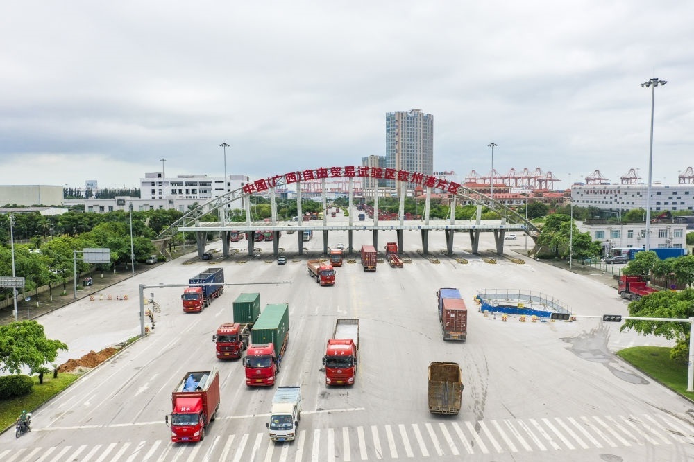 中國(guó)(廣西)自由貿(mào)易試驗(yàn)區(qū)欽州港片區(qū)(2024年5月20日攝,無(wú)人機(jī)照片)。聚焦面向東盟、服務(wù)陸海新通道、沿邊開(kāi)放三大特色,開(kāi)展差異化探索和特色制度創(chuàng)新,讓中國(guó)(廣西)自由貿(mào)易試驗(yàn)區(qū)成為我國(guó)面向東盟開(kāi)放發(fā)展的前沿。