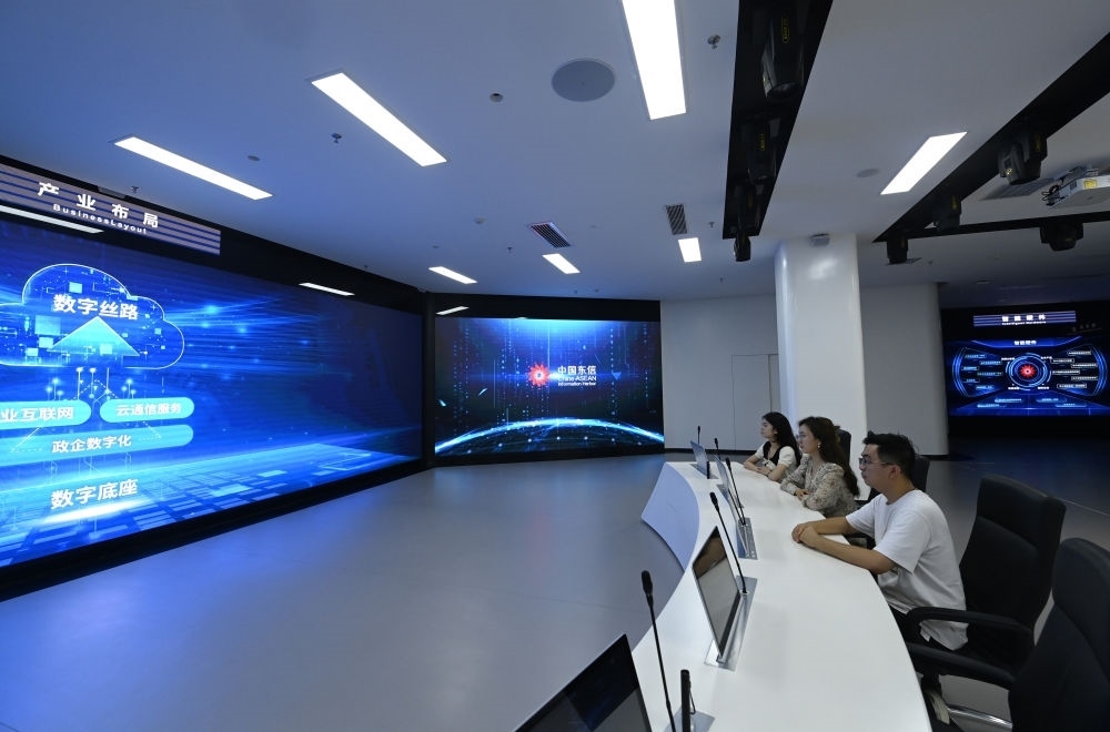 2023年12月12日拍攝的中國(guó)-東盟信息港股份有限公司內(nèi)景。歷經(jīng)多年建設(shè),中國(guó)-東盟信息港正努力打造面向東盟的國(guó)際通信大通道、大數(shù)據(jù)資源應(yīng)用服務(wù)大樞紐、新一代信息技術(shù)應(yīng)用示范高地、數(shù)字經(jīng)濟(jì)開(kāi)放合作集聚區(qū)和人文交流合作中心。
