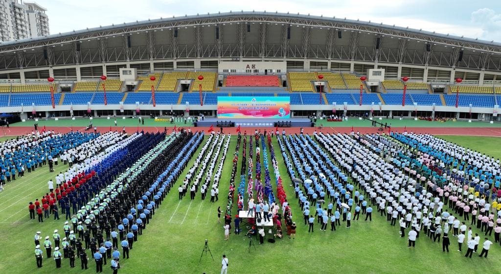 2024年8月14日,第十二屆全國(guó)少數(shù)民族傳統(tǒng)體育運(yùn)動(dòng)會(huì)倒計(jì)時(shí)100天誓師大會(huì)現(xiàn)場(chǎng)。新華社發(fā)(袁永東攝)