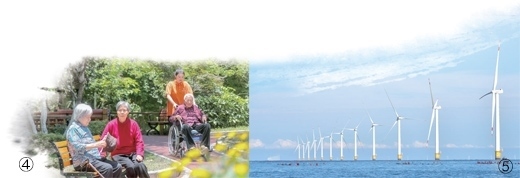 圖④:貴州省貴陽市白云區(qū)白沙關(guān)社區(qū)幸福苑養(yǎng)老中心,老年人在花園里休息。袁福洪攝(影像中國) 圖⑤:遼寧大連莊河海上風(fēng)電項(xiàng)目。新華社記者 楊 青攝