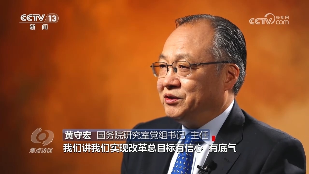 黃守宏:“在進(jìn)一步全面深化改革總目標(biāo)中,明確了到2035年的階段性改革目標(biāo),‘七個(gè)聚焦’的分領(lǐng)域改革目標(biāo),明確了到2029年完成《決定》提出的改革任務(wù)的要求,形成了在總目標(biāo)的統(tǒng)領(lǐng)之下,有總有分、總分結(jié)合、體系完備的目標(biāo)體系和推進(jìn)改革的時(shí)間表、路線圖、任務(wù)書。”