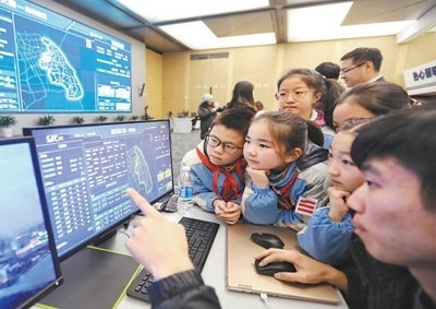 城市治理市民在浦東新區(qū)城市運(yùn)行綜合管理中心參觀。黃日閱攝(人民視覺(jué))