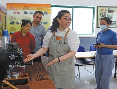 城市治理浦東新區(qū)滬東新村街道壽二就業(yè)服務(wù)站,專業(yè)老師為轄區(qū)10多名人員舉辦咖啡技能體驗(yàn)與培訓(xùn)活動(dòng)。李茂君攝(人民視覺(jué))