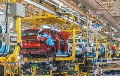 科技創(chuàng)新上汽臨港基地的柔性生產(chǎn)線。尚 清攝(人民視覺(jué))