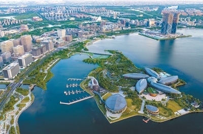擴(kuò)大開放上海自貿(mào)試驗(yàn)區(qū)臨港新片區(qū)滴水湖畔,鱗次櫛比的樓宇拔地而起。計(jì)海新攝(影像中國(guó))