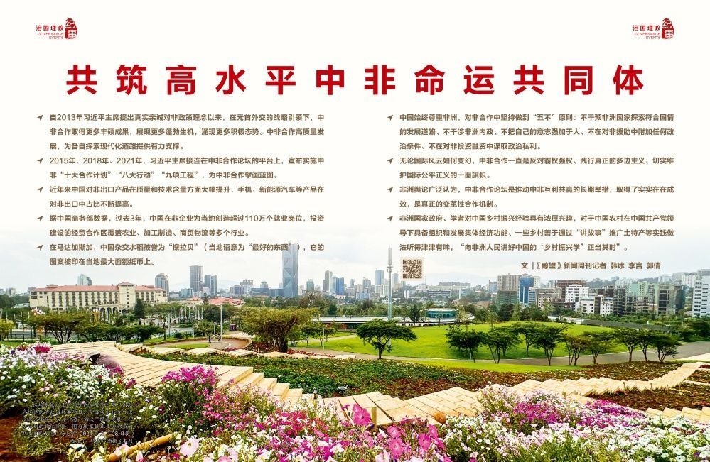 “中非人民命運與共”“發(fā)展同非洲國家團結合作是中國外交政策的重要基石”“中國是非洲國家維護獨立自主和推進發(fā)展振興道路上的可靠朋友和真誠伙伴”……習近平主席的一系列重要論述,鮮明體現中國人民始終和非洲人民同呼吸、共命運的真誠意愿,深刻詮釋中非合作持續(xù)深化發(fā)展的內在動力。