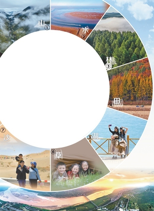 圖①:雨后的武夷山國家公園云霧繚繞。國家公園是我國自然生態(tài)系統(tǒng)中最重要、自然景觀最獨(dú)特、自然遺產(chǎn)最精華、生物多樣性最富集的部分,我國國家公園建設(shè)是生態(tài)文明建設(shè)中具有示范引領(lǐng)意義的工程。邱汝泉攝(新華社發(fā))圖②:山東東營市紅灘濕地旅游區(qū)生態(tài)濕地,生長在灘涂上的堿蓬等鹽生植物,如同一塊巨大的紅地毯。劉智峰攝(影像中國)圖③:河北承德市圍場滿族蒙古族自治縣塞罕壩國家森林公園。組建至今,塞罕壩機(jī)械林場營造人工林百萬畝,創(chuàng)造了荒原變林海的奇跡。劉滿倉攝(影像中國)圖④:黑龍江雞西密山市黑土地上種植的玉米。近年來,我國加強(qiáng)黑土地保護(hù),守護(hù)“耕地中的大熊貓”。孫樹寶攝(影像中國)圖⑤:游客在青海湖畔拍照。當(dāng)?shù)亓己玫纳鷳B(tài)環(huán)境和優(yōu)美的景色吸引了來自全國各地的大量游客。新華社記者 張 龍攝圖⑥:四川甘孜藏族自治州日通草原上,躲在帳篷里的小朋友享受假日生活。我國持續(xù)推進(jìn)草原生態(tài)保護(hù)修復(fù),穩(wěn)步提升草原生態(tài)功能。新華社記者 江宏景攝圖⑦:新疆博湖縣博斯騰湖畔的艾勒遜烏拉沙漠,游客正帶著孩子在游玩。近年來,我國推進(jìn)科學(xué)化、規(guī)?;紊?,重點(diǎn)治理區(qū)實(shí)現(xiàn)“沙進(jìn)人退”到“綠進(jìn)沙退”的歷史性轉(zhuǎn)變。年 磊攝(人民視覺)圖⑧:黃河陜西潼關(guān)段景觀。近年來,我國持續(xù)推動(dòng)黃河流域生態(tài)保護(hù)和高質(zhì)量發(fā)展,流域生態(tài)環(huán)境持續(xù)明顯向好,讓黃河成為造福人民的幸福河。王生暉攝(人民視覺)