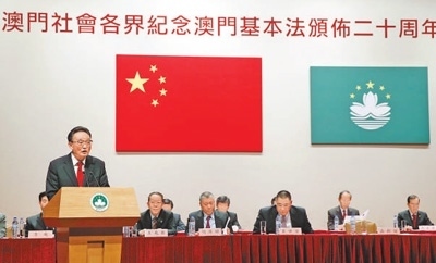 2013年2月21日,吳邦國同志在澳門文化中心出席澳門社會各界紀念澳門基本法頒布20周年啟動大會并發(fā)表講話。新華社記者 鞠 鵬攝