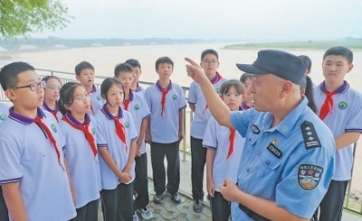 兩名沿黃生態(tài)巡查員將電動(dòng)車(chē)停在不遠(yuǎn)處,來(lái)到學(xué)生身邊說(shuō):“我們是鎮(zhèn)上的沿黃生態(tài)巡查員,任務(wù)是在黃河岸邊巡查,一旦發(fā)現(xiàn)情況立即報(bào)告?!彼麄兏嬖V大家,隨著黃河生態(tài)保護(hù)帶動(dòng)旅游業(yè)發(fā)展,周邊居民的日子也越過(guò)越紅火。