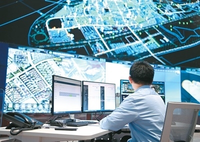 | 在天津市濱海新區(qū)中新天津生態(tài)城智慧城市運營中心內(nèi),工作人員在查看監(jiān)控。新華社記者 趙子碩攝 |