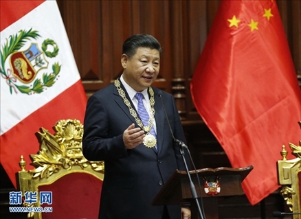 當(dāng)?shù)貢r(shí)間2016年11月21日,國(guó)家主席習(xí)近平在秘魯國(guó)會(huì)發(fā)表題為《同舟共濟(jì)、揚(yáng)帆遠(yuǎn)航,共創(chuàng)中拉關(guān)系美好未來(lái)》的重要演講。新華社記者 鞠鵬 攝