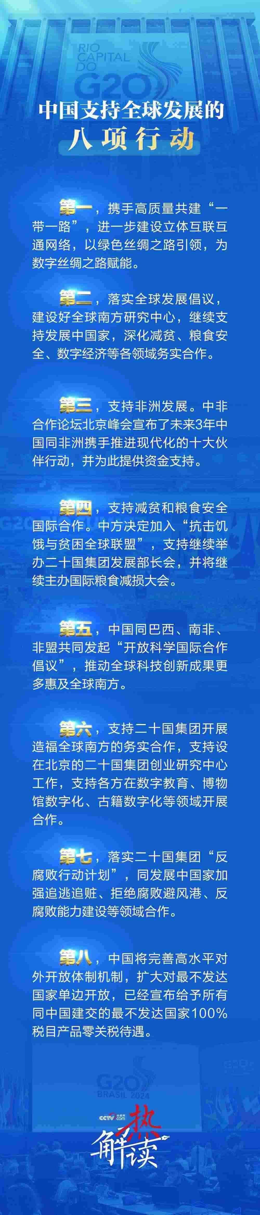 在二十國集團(tuán)領(lǐng)導(dǎo)人第十九次峰會第一階段會議上,習(xí)近平主席發(fā)表重要講話,宣布中國支持全球發(fā)展的八項(xiàng)行動。