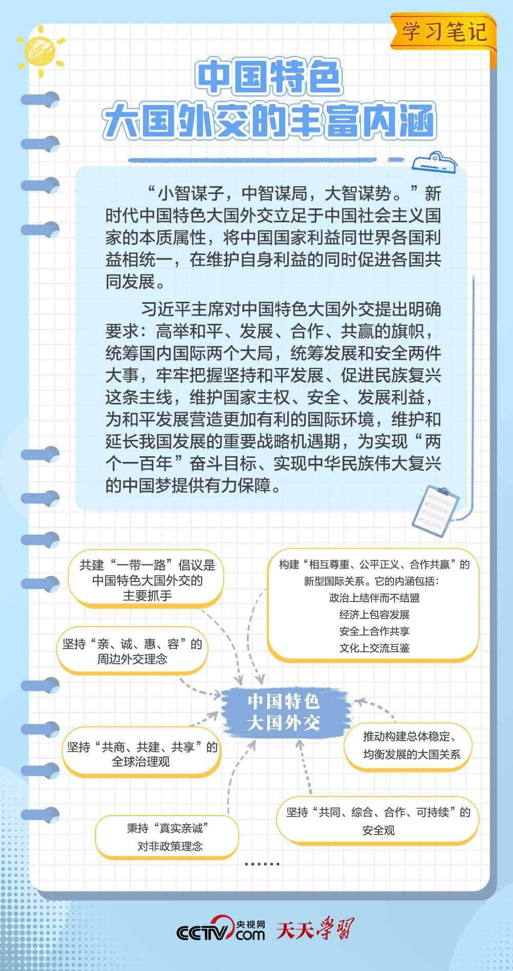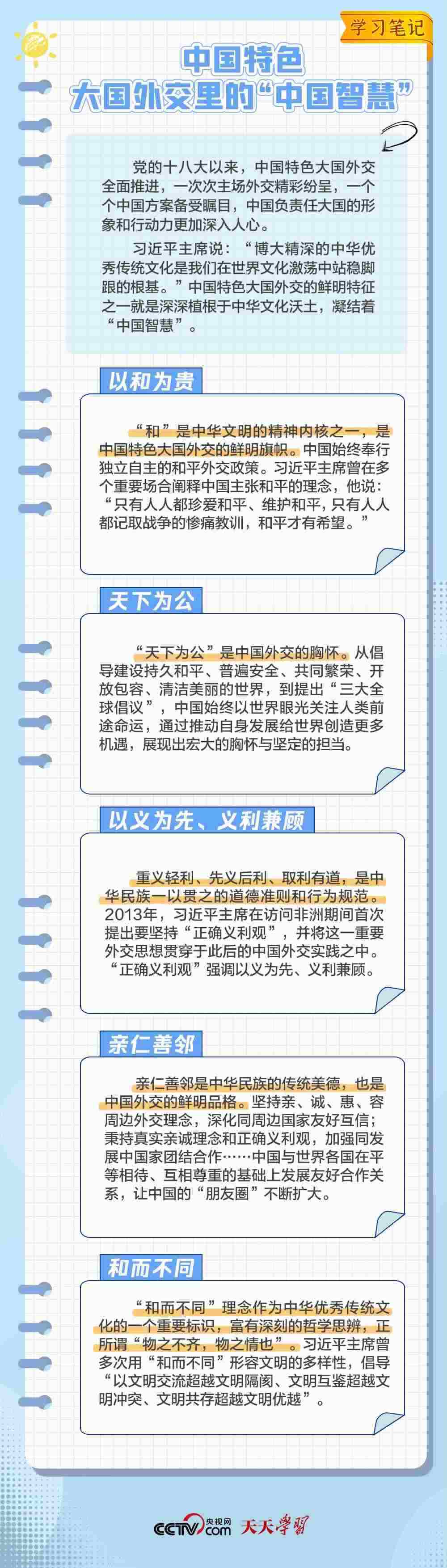 10年來,面對風(fēng)云變幻的國際形勢,中國特色大國外交扎實推進(jìn),形成了全方位、多層次、立體化的外交布局,為我國高質(zhì)量發(fā)展?fàn)I造了良好外部環(huán)境。中國特色大國外交提出10周年之際,《學(xué)習(xí)筆記》特梳理其內(nèi)涵要義,與您一同感悟其中蘊(yùn)含的“中國智慧”。
