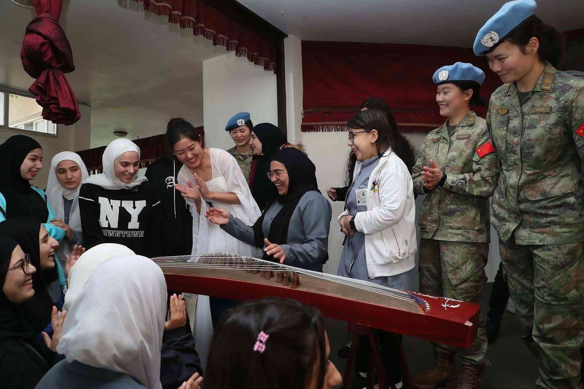 △2024年3月12日,中國第22批赴黎維和部隊(duì)官兵與黎巴嫩庫雷拉中學(xué)開展文化交流活動(dòng)。