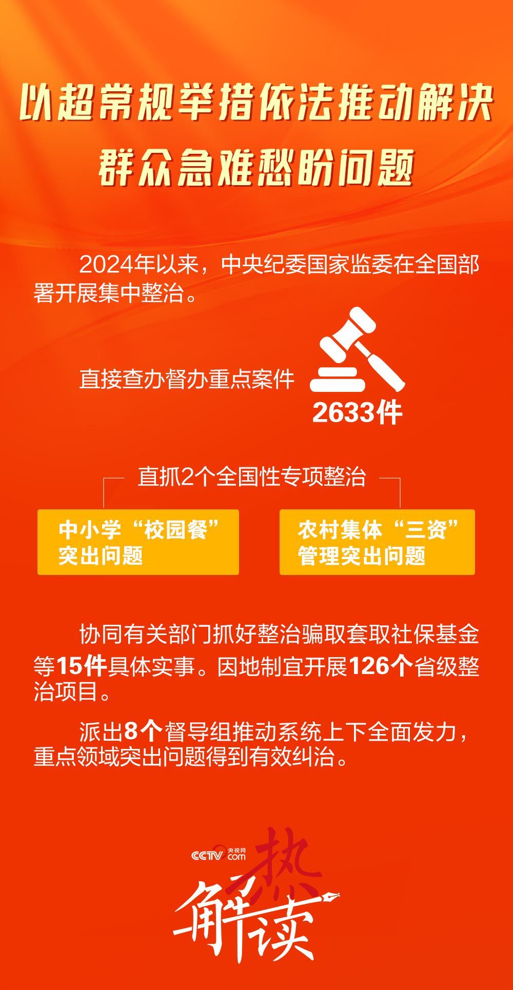 2024年1月8日,在二十屆中央紀委三次全會上,習近平總書記明確要求懲治“蠅貪蟻腐”,讓群眾有更多獲得感。全會強調(diào)瞄準教育、就業(yè)、醫(yī)療等民生領(lǐng)域的痛點難點開展集中整治。此次召開的二十屆中央紀委四次全會,更加明確民生領(lǐng)域腐敗問題整治方向——聚焦“縣以下這一關(guān)鍵環(huán)節(jié)、薄弱環(huán)節(jié)”,直達正風肅紀反腐“最后一公里”。