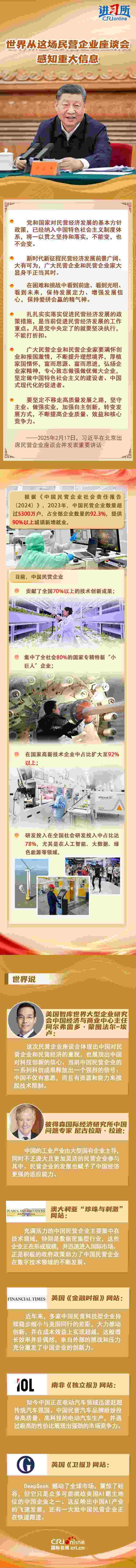2月17日,中國(guó)為民營(yíng)企業(yè)高質(zhì)量發(fā)展專門(mén)召開(kāi)了一場(chǎng)最高規(guī)格的座談會(huì)。中共中央總書(shū)記、國(guó)家主席習(xí)近平出席座談會(huì),聽(tīng)取6名知名民營(yíng)企業(yè)家就新形勢(shì)下促進(jìn)民營(yíng)經(jīng)濟(jì)發(fā)展的建議和意見(jiàn),并發(fā)表重要講話。