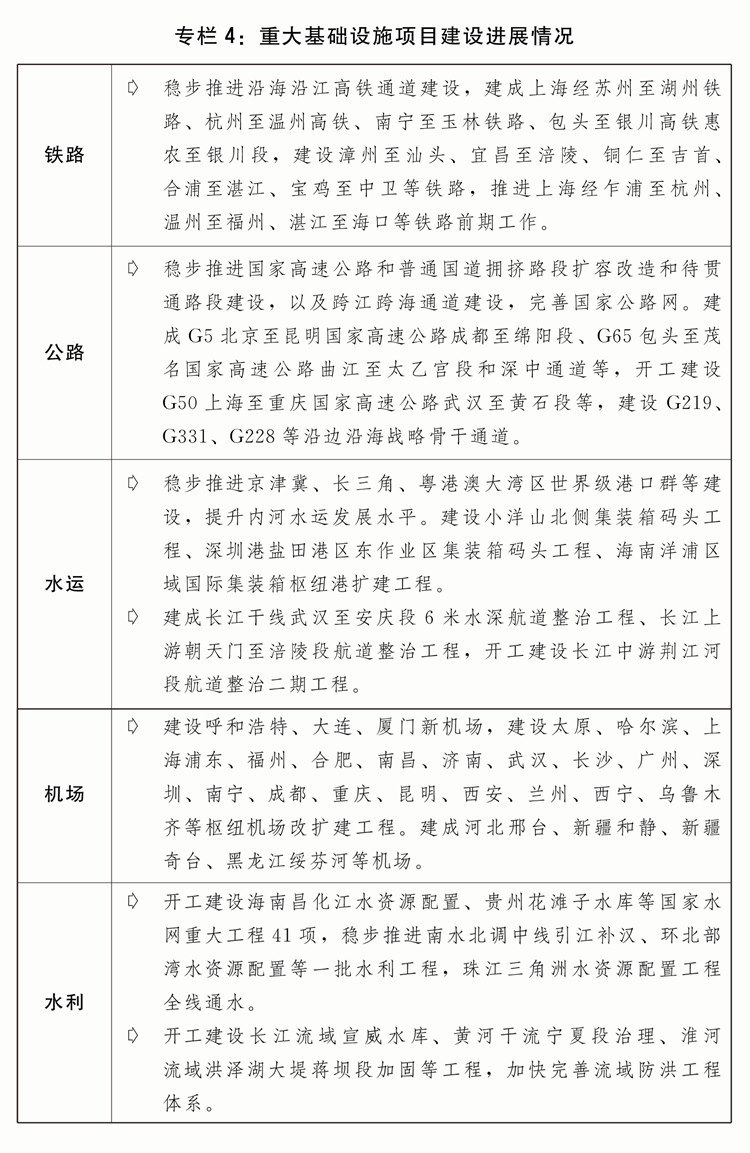 五是加快完善現(xiàn)代化基礎(chǔ)設(shè)施體系。高質(zhì)量推進(jìn)川藏鐵路等重大項(xiàng)目建設(shè),加快構(gòu)建國家水網(wǎng)工程體系,高水平共建西部陸海新通道。深入實(shí)施降低全社會(huì)物流成本專項(xiàng)行動(dòng)。持續(xù)推進(jìn)國家物流樞紐、國家骨干冷鏈物流基地、國家綜合貨運(yùn)樞紐體系、大宗商品資源配置樞紐等布局建設(shè)。加快完善應(yīng)急物流體系。深入推進(jìn)公路水路交通基礎(chǔ)設(shè)施數(shù)字化轉(zhuǎn)型升級(jí)。推動(dòng)各種運(yùn)輸方式規(guī)則標(biāo)準(zhǔn)統(tǒng)一協(xié)同,加快多式聯(lián)運(yùn)“一單制、一箱制”應(yīng)用。