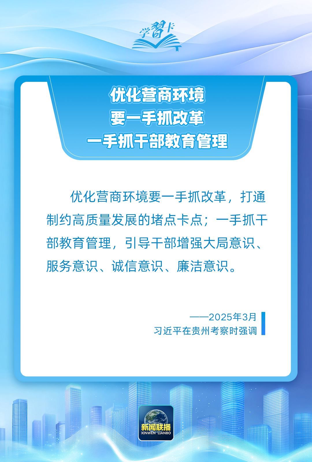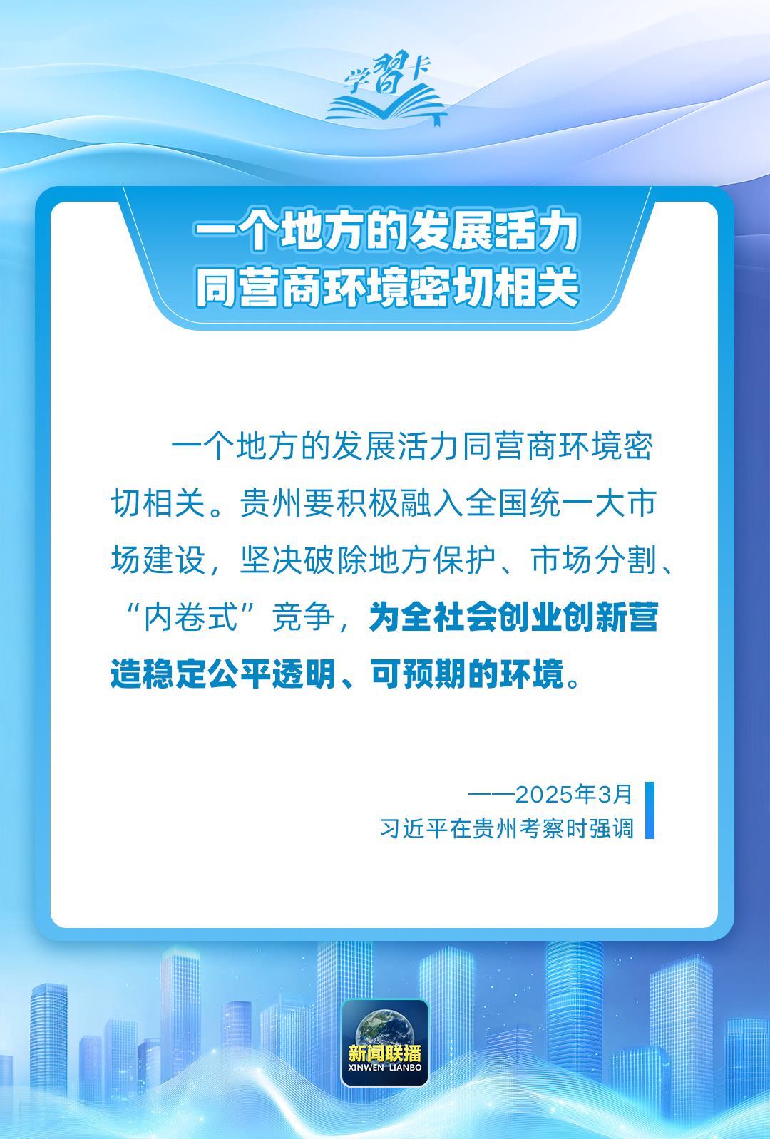 近日,習(xí)近平總書記在貴州考察時(shí)強(qiáng)調(diào),一個(gè)地方的發(fā)展活力同營商環(huán)境密切相關(guān)。一起學(xué)習(xí)↓↓