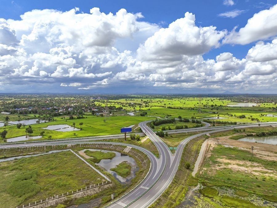 金港高速是柬埔寨第一條高速公路,是中柬共建“一帶一路”的標志性工程。這是2024年9月25日在柬埔寨磅士卑省拍攝的金港高速(無人機照片)。新華社發(fā)(柬埔寨金港高速公路有限公司供圖)