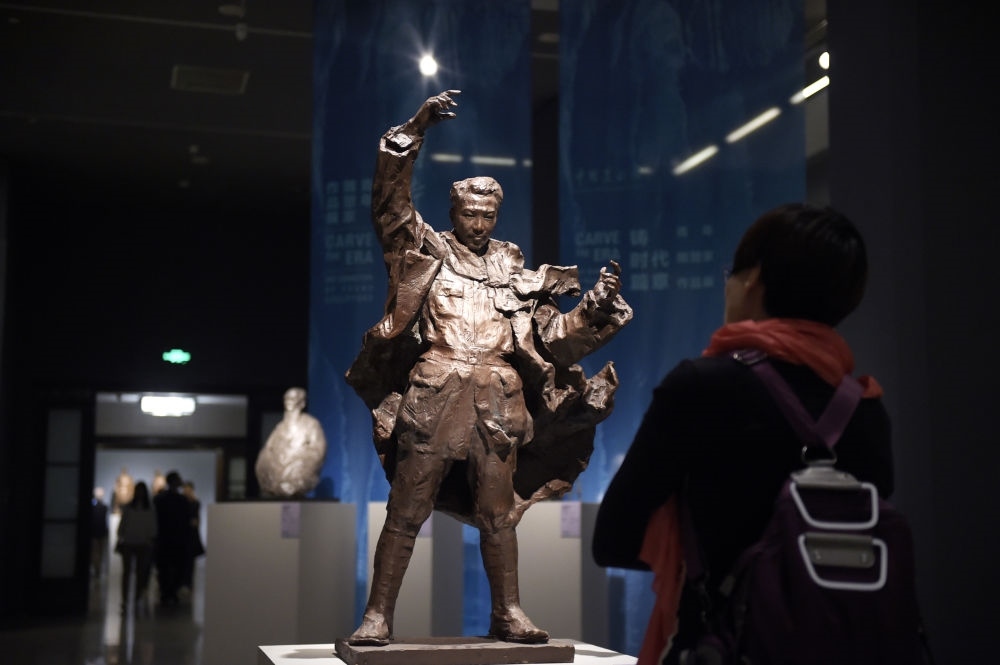 2018年4月1日,參觀者在北京的中國美術(shù)館參觀雕塑作品“冼星海”。新華社記者 魯鵬攝