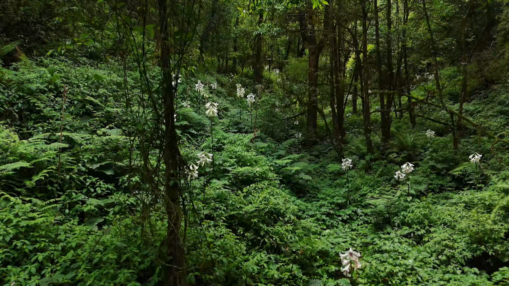 近日,云南省龍陵小黑山省級自然保護區(qū)工作人員在原始密林中發(fā)現(xiàn)罕見野生云南大百合群落,植株數(shù)量超1萬株,最大連片分布面積達5畝,最高植株突破3米、單株綻放出16朵花。