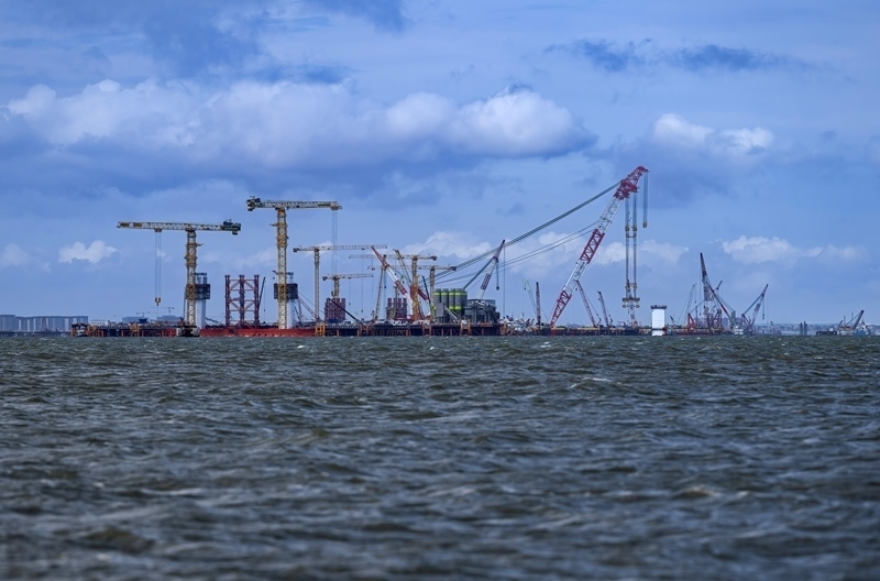 這是廈金大橋(廈門段)海上橋梁大規(guī)模裝配化施工現(xiàn)場(6月13日攝)。