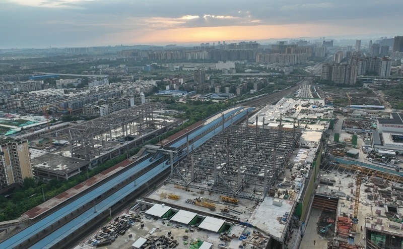 俯瞰改造中的成渝中線高鐵成都站(6月20日,無人機照片)。