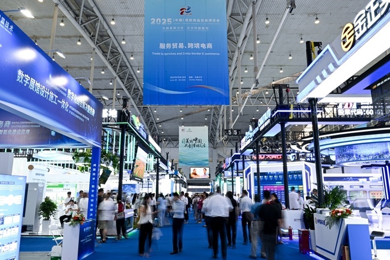 6月26日拍攝的2025(中國(guó))亞歐商品貿(mào)易博覽會(huì)服務(wù)貿(mào)易、跨境電商展區(qū)。