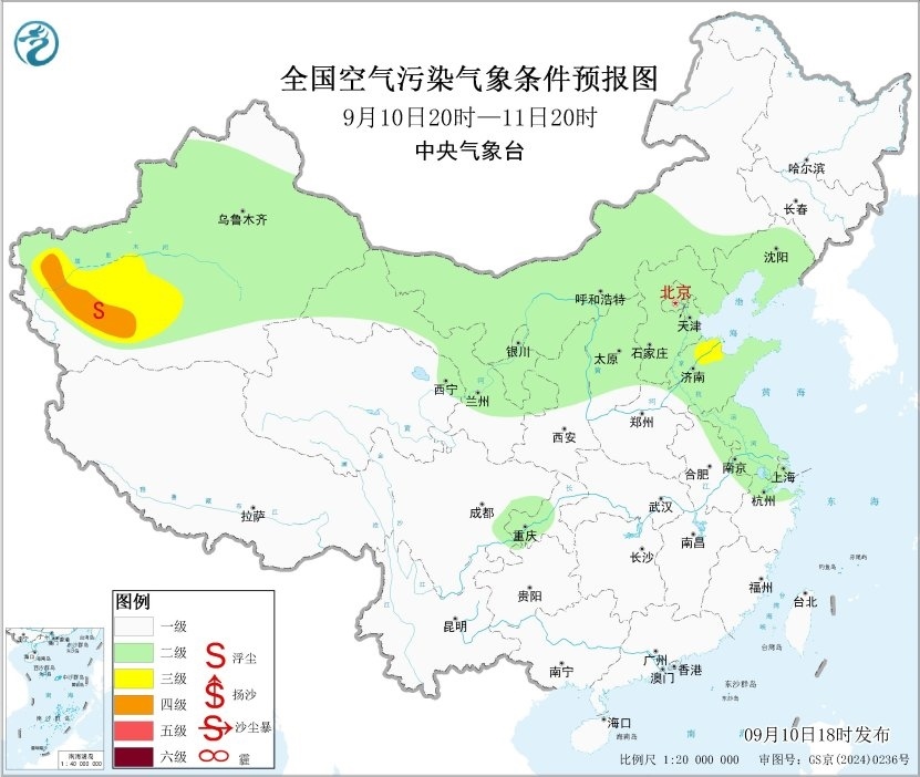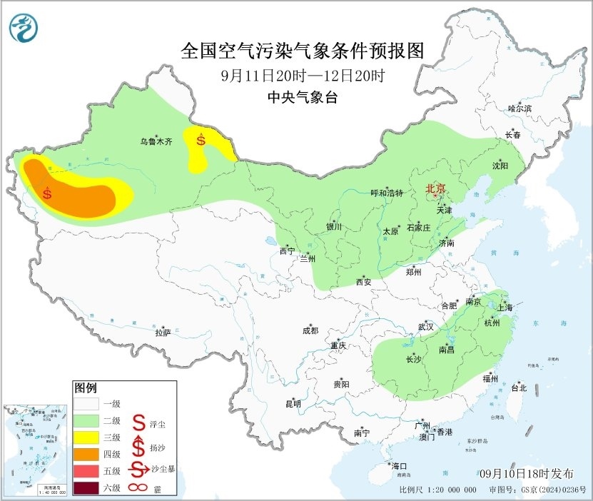 中新網(wǎng)9月10日電 據(jù)中央氣象臺(tái)網(wǎng)站消息,未來(lái)一周,全國(guó)大部地區(qū)大氣擴(kuò)散條件較好,無(wú)明顯霾天氣。13日內(nèi)蒙古中部偏北部分地區(qū)有沙塵天氣。