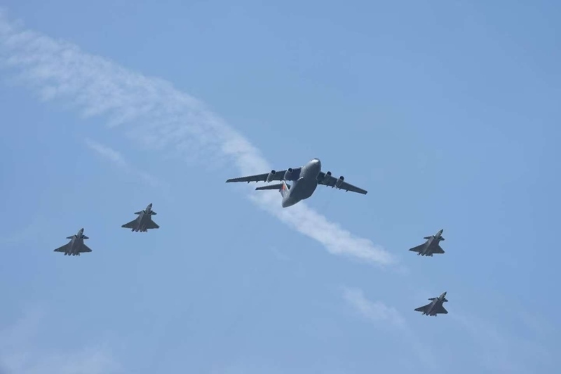 9月12日,第十二批在韓中國(guó)人民志愿軍烈士遺骸回國(guó)。這是為接運(yùn)烈士遺骸回國(guó)的運(yùn)-20專機(jī)伴飛護(hù)航的殲-20飛機(jī)。