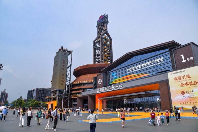 9月13日,人們在北京首鋼園2025年服貿(mào)會現(xiàn)場參觀。