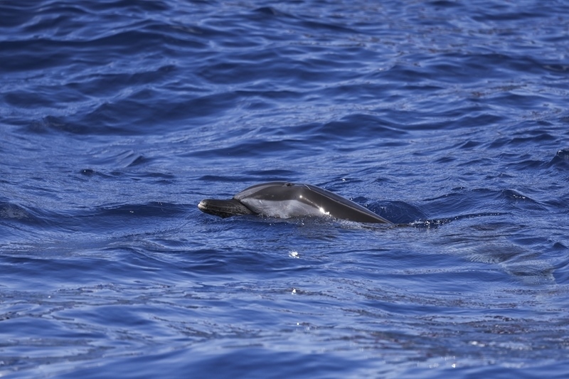 9月14日,在海南萬(wàn)寧一處海域,海豚“萬(wàn)萬(wàn)”在大海中暢游。