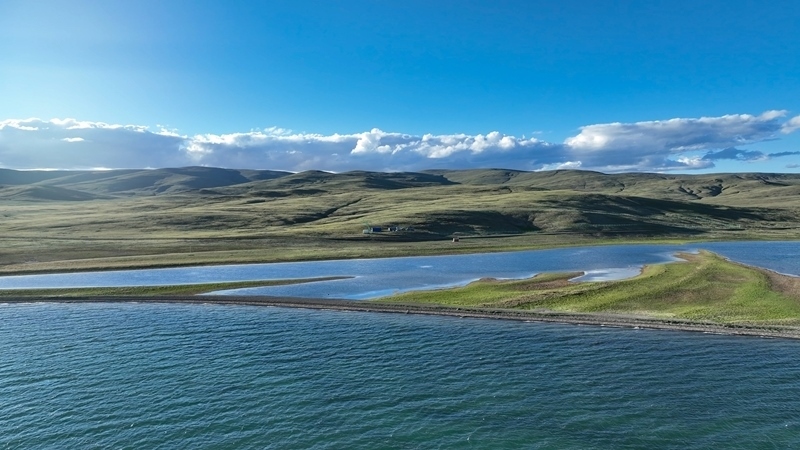 7月25日拍攝的“尕日塘秦刻石”所在地青海省果洛藏族自治州瑪多縣扎陵湖北岸(無人機(jī)照片)。