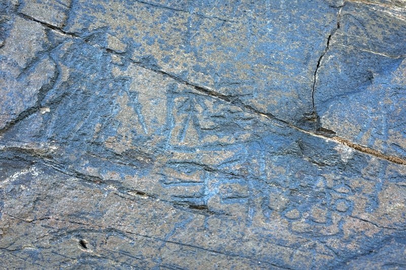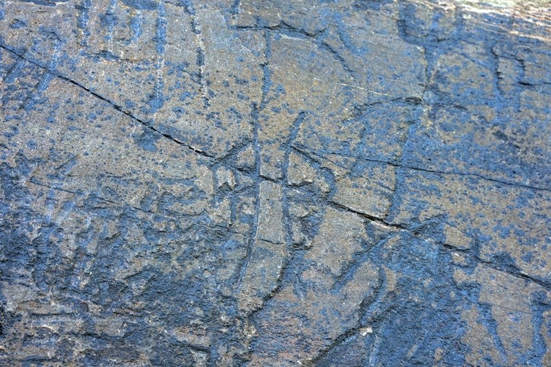 文物考古工作者于2023年7月在青海省瑪多縣扎陵湖畔對(duì)尕日塘秦刻石進(jìn)行現(xiàn)場(chǎng)考察時(shí)拍攝的該刻石遺跡照片。