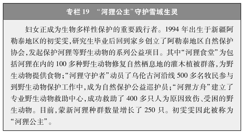 推動(dòng)生態(tài)系統(tǒng)保護(hù)修復(fù)。統(tǒng)籌推進(jìn)山水林田湖草沙一體化保護(hù)和系統(tǒng)治理,著力構(gòu)建從山頂?shù)胶Q蟮谋Wo(hù)治理大格局。廣大婦女積極投身生態(tài)系統(tǒng)保護(hù)修復(fù),在19.07萬平方公里的三江源國家公園,有1.7萬余名生態(tài)管護(hù)員日夜堅(jiān)守,其中婦女占33.3%;海南昌江黎族自治縣的“植樹娘子軍”,30余年持續(xù)摸索反復(fù)試驗(yàn),在荒漠中種出了3萬多畝近600萬株海防林;陜西女子民兵治沙連50多年治理了1.4萬畝荒漠地區(qū),使昔日寸草不生、人跡罕至的荒漠變成了“林成網(wǎng)、樹成行”的大漠綠洲;寧夏賀蘭縣“紅馬甲”巾幗志愿服務(wù)隊(duì)常年開展護(hù)河護(hù)灘護(hù)鳥行動(dòng);江蘇南京市持續(xù)開展“長江大保護(hù)”巾幗行動(dòng)。在增綠護(hù)林、防沙治沙、江河保護(hù)、生物多樣性保護(hù)等各方面都展現(xiàn)著婦女的堅(jiān)韌與智慧。