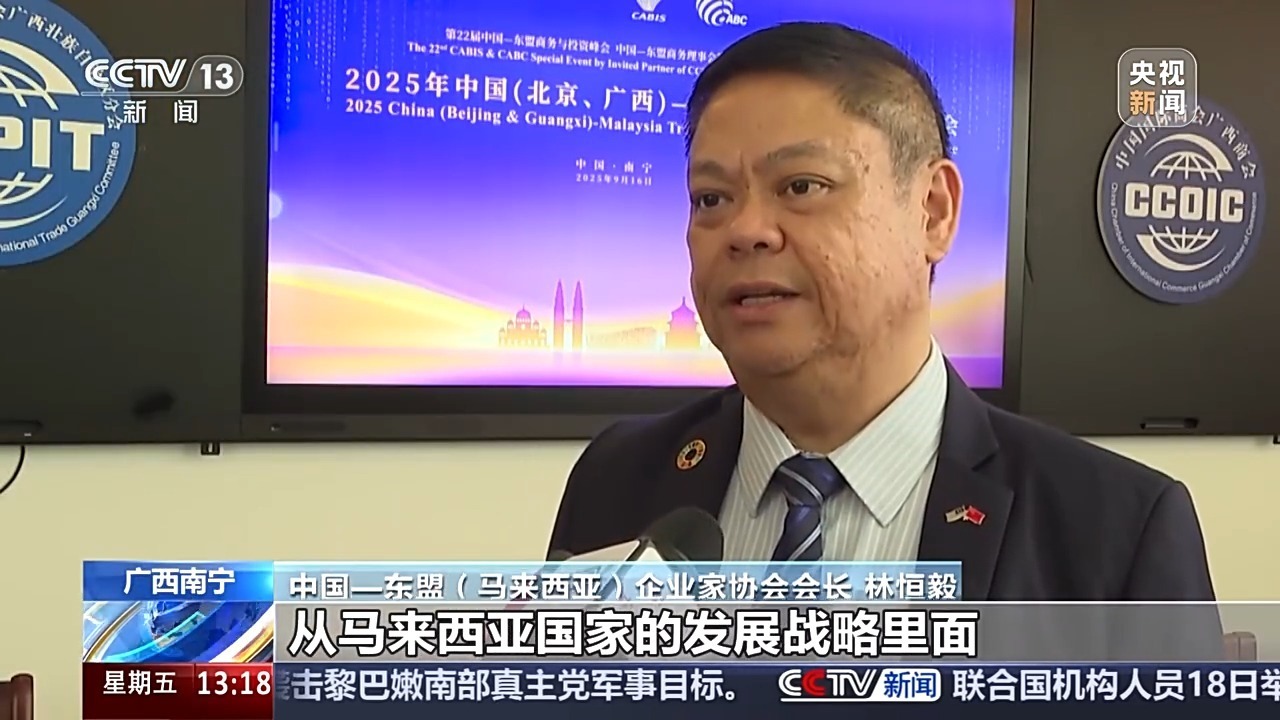 中國(guó)—東盟(馬來(lái)西亞)企業(yè)家協(xié)會(huì)會(huì)長(zhǎng) 林恒毅:從馬來(lái)西亞國(guó)家的發(fā)展戰(zhàn)略里面,綠色經(jīng)濟(jì)是很重要的一環(huán)。中國(guó)有著許多的這種良好的技術(shù)和成熟的技術(shù),其實(shí)就是希望能夠把這些成熟的技術(shù)帶來(lái)發(fā)展中國(guó)家,讓我們大家能夠共享、共建和共創(chuàng)。
