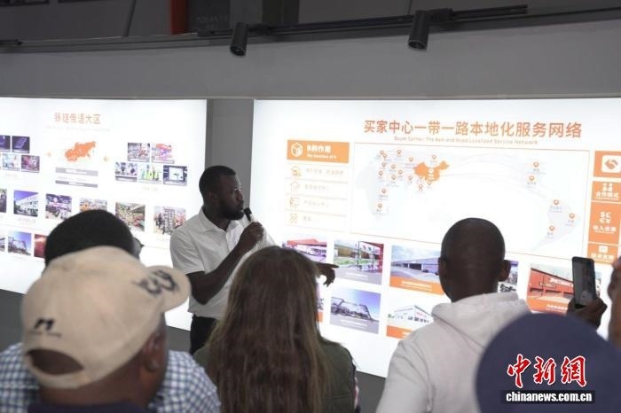 現(xiàn)場,非洲籍工作人員白小龍為代表團講解,在他看來,這一模式有效地幫助商家整合信息、鏈接價值,“既能助中國制造走出去,也能幫非洲企業(yè)精準對接所需產(chǎn)品與服務?!?/p>