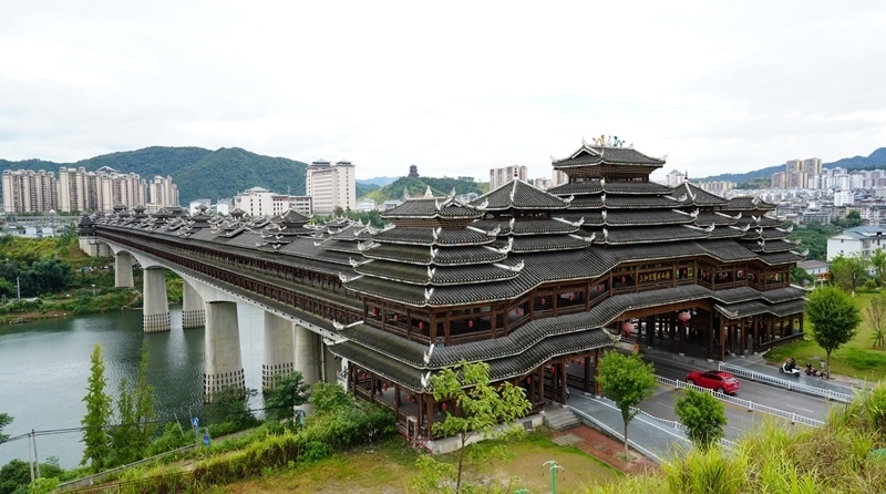 侗族風(fēng)雨橋是侗族木構(gòu)建筑的代表之一。廣西柳州市三江侗族自治縣現(xiàn)有侗族風(fēng)雨橋200余座,如三江宜陽(yáng)風(fēng)雨橋、程陽(yáng)永濟(jì)橋等。