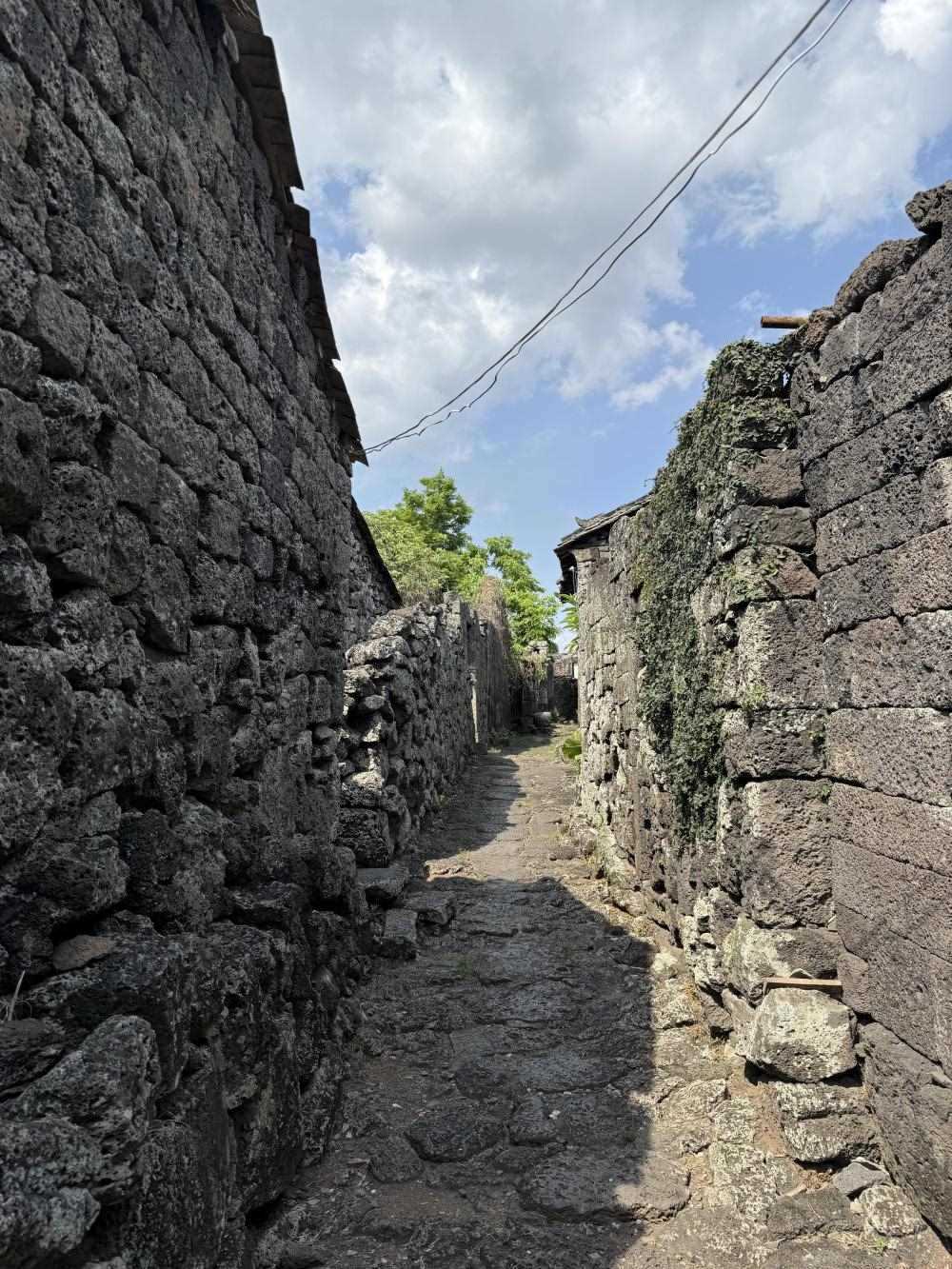??谑行阌^(qū)石山鎮(zhèn)三卿村——一座火山爆發(fā)遺跡上建起的古村落,便講述了古人因地制宜、順應(yīng)自然建設(shè)家園的故事:平整的熔巖臺地成為房屋的基礎(chǔ)、黑色的火山巖是建屋的原料,火山土壤里長出的作物營養(yǎng)又高產(chǎn)……