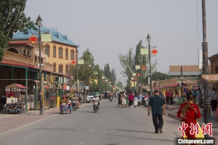 約2000年前,張騫從西域帶回無花果,后經阿拉伯商人開展貿易,阿孜汗成為無花果傳入中國第一站。目前,阿孜汗種有無花果樹1108畝,其中有百棵超450年樹齡。2023年,由江蘇昆山援建的阿孜汗無花果民俗文化旅游景區(qū)開始運營,“無花果風情街”是其中關鍵。