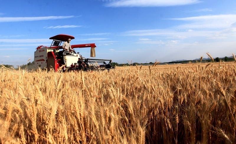 6月5日,河南省焦作市溫縣武德鎮(zhèn)農(nóng)民駕駛收割機(jī)收獲小麥。