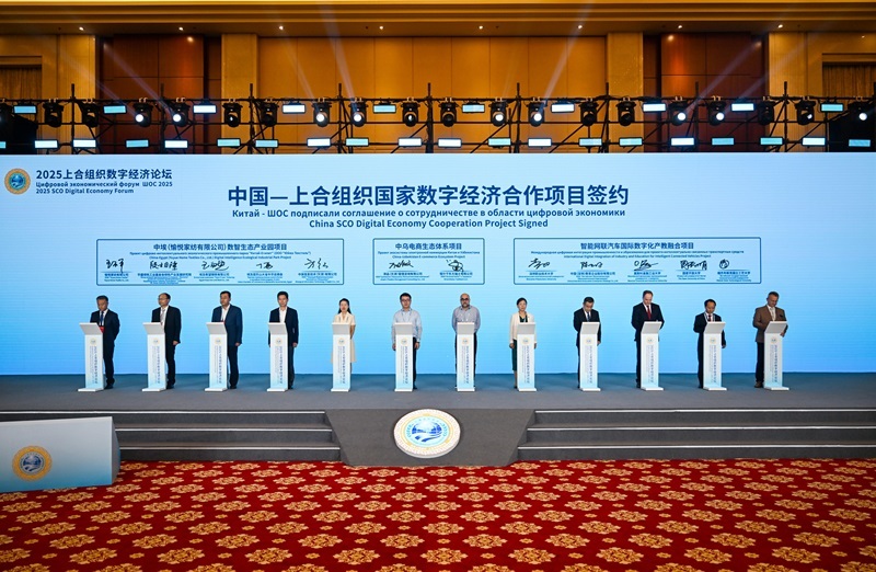 7月11日在論壇現(xiàn)場(chǎng)拍攝的中國(guó)—上合組織國(guó)家數(shù)字經(jīng)濟(jì)合作項(xiàng)目簽約儀式。