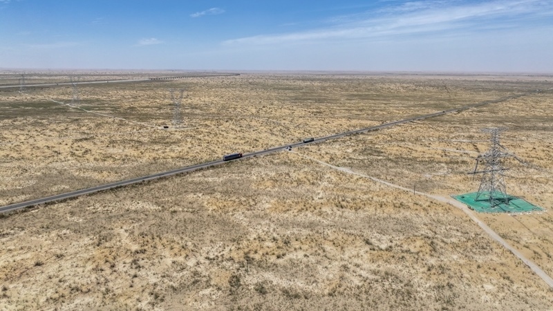 當(dāng)日,在塔里木盆地南緣的新疆和田地區(qū)民豐縣,隨著牽引機(jī)將最后一段電線成功從183號鐵塔拽至188號鐵塔,標(biāo)志著歷時(shí)15年建設(shè)的環(huán)塔里木盆地750千伏輸變電工程全線貫通,形成了一條圍繞塔里木盆地的750千伏超高壓輸電環(huán)網(wǎng)。