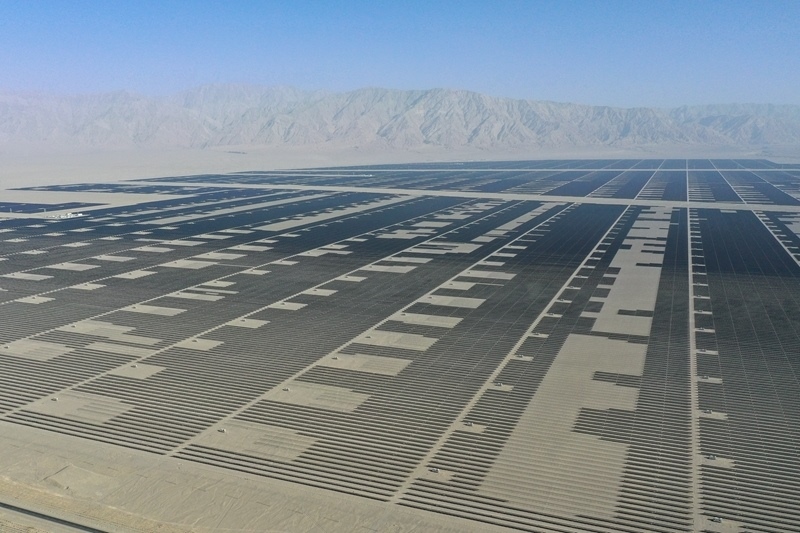 這是中國綠發(fā)新疆中綠電若羌400萬千瓦光伏項(xiàng)目(6月26日攝,無人機(jī)照片)。