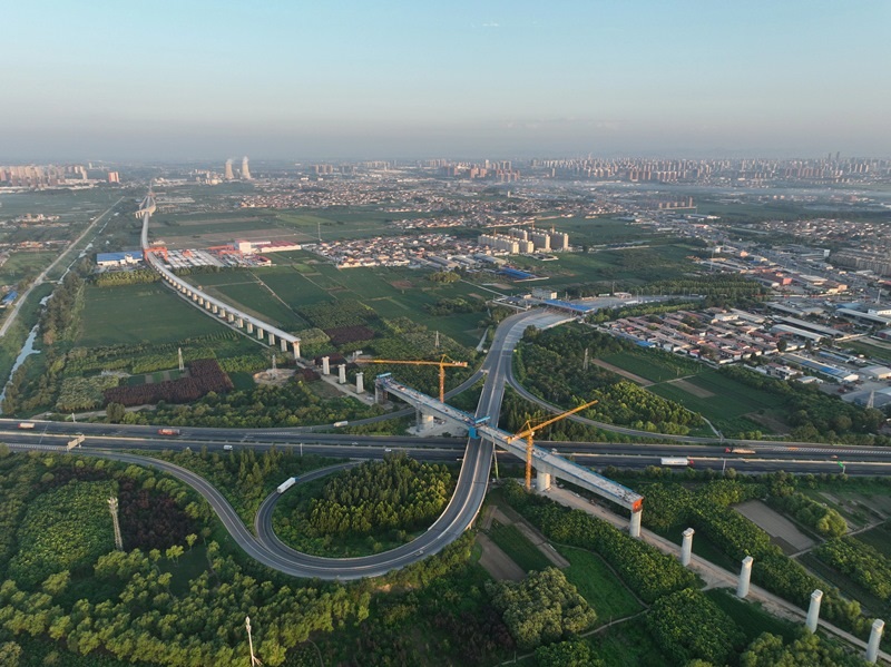 當(dāng)日,由國鐵北京局站房工程項(xiàng)目管理部建設(shè),中鐵十四局施工的雄忻高鐵保定東特大橋跨京港澳高速連續(xù)梁中跨順利合龍。該橋位于河北省保定市,全長約11千米。雄忻高鐵起自雄安站,終到忻州西站,正線全長342公里,是我國“八縱八橫”高速鐵路網(wǎng)京昆通道的重要組成部分,也是雄安新區(qū)“四縱兩橫”區(qū)域高鐵網(wǎng)的重要橫向通道。