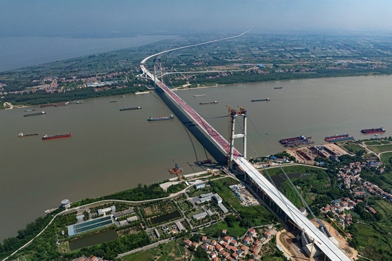 據(jù)了解,新港高速公路武漢雙柳長江大橋及接線工程是國家高速路網(wǎng)武漢都市圈環(huán)線重要組成部分,路線全長35.043公里,其中跨江主橋主跨1430米、寬50.5米,設(shè)計(jì)時(shí)速120公里,采用雙向8車道設(shè)計(jì),是目前長江上在建的最寬鋼箱梁懸索橋。