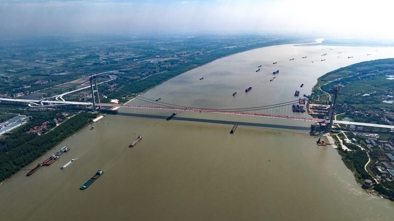 7月26日拍攝的合龍后的雙柳長江大橋(無人機(jī)照片)。