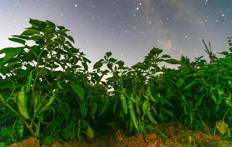 7月26日在黑龍江省佳木斯市蓮江口鎮(zhèn)拍攝的星空下的辣椒。
