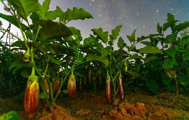 7月26日在黑龍江省佳木斯市蓮江口鎮(zhèn)拍攝的星空下的茄子。